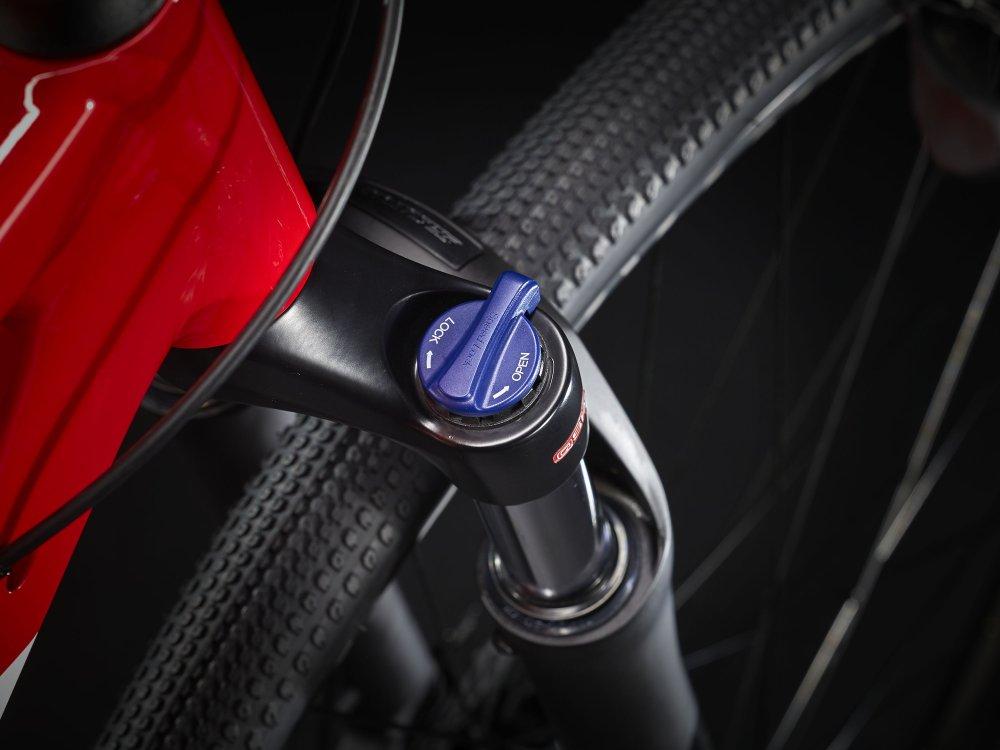 - Dank der hydraulischen Lockout-Funktion an der Federgabel bist du jederzeit effizient unterwegs: blockiert auf glattem Asphalt, geöffnet auf holprigerem Untergrund.