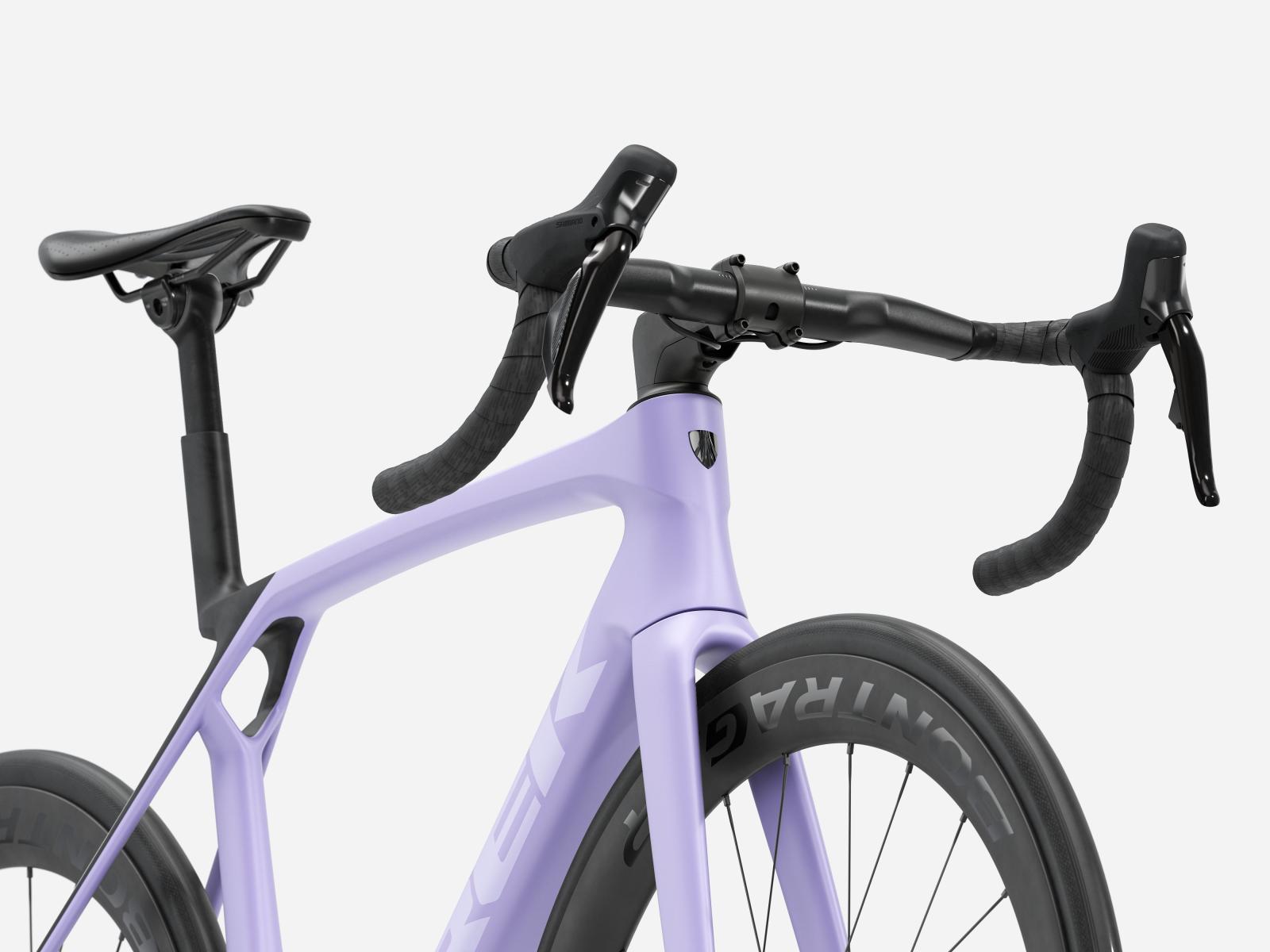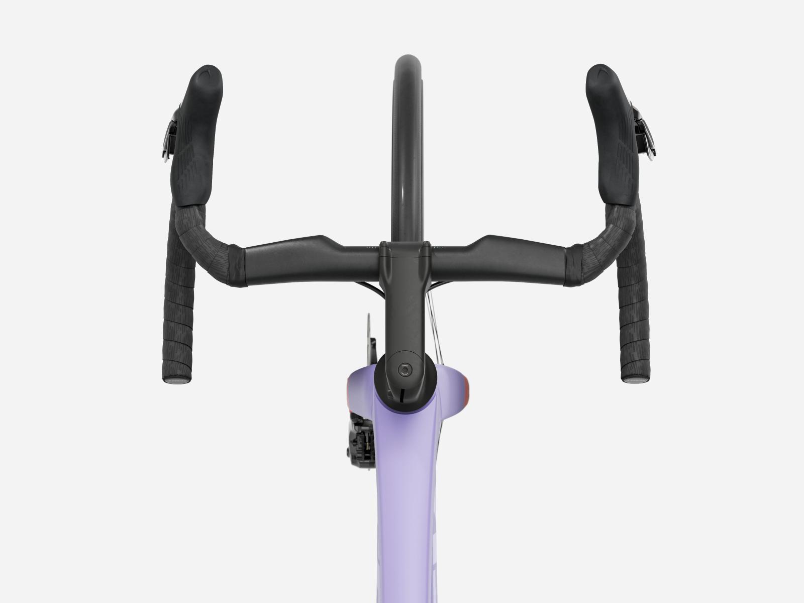 Der im Vergleich zum Unterlenker schmalere Oberlenker des Madone�Gen�8 erm�glicht eine auf Aerodynamik oder Power optimierte Positionierung auf dem Bike. Und dank zweiteiligem Lenker/Vorbau-Design l�sst sich die Passform schnell und einfach anpassen.