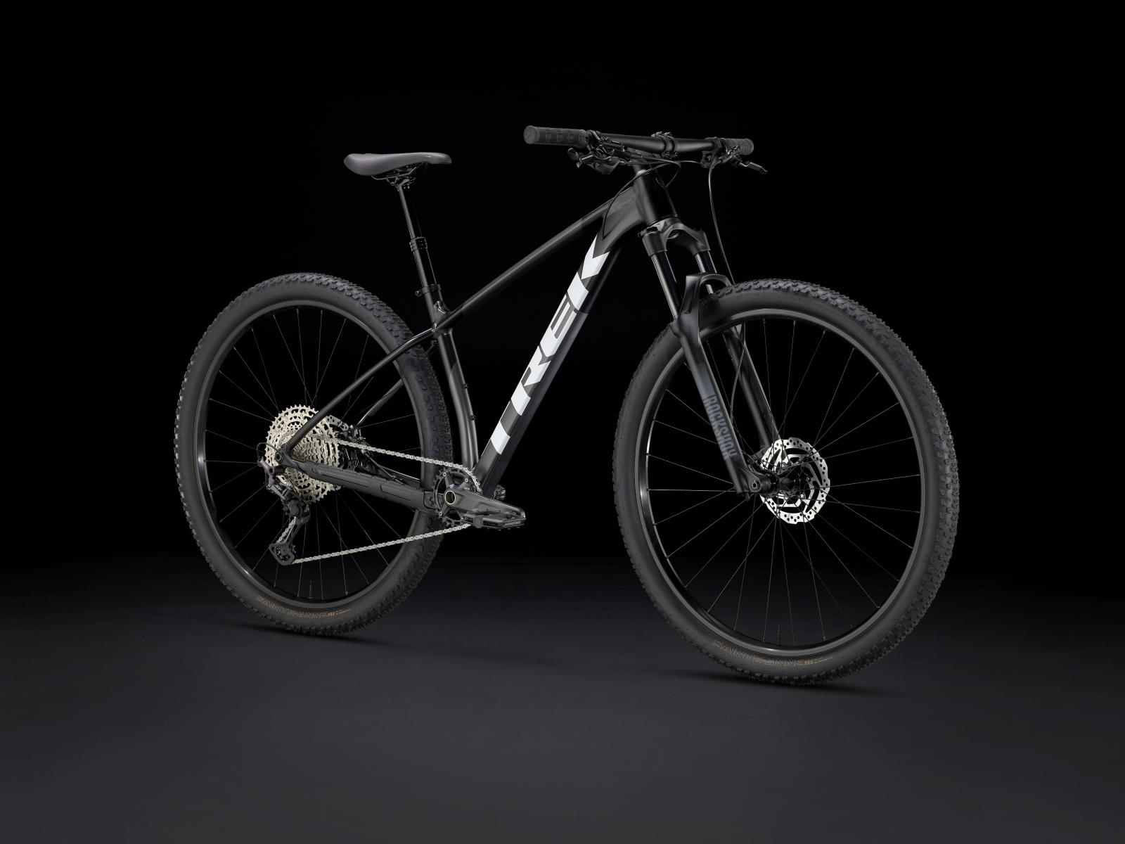 Einen leichten Hardtail-Rahmen aus Alpha Platinum Aluminium mit moderner XC-Geometrie samt 148 mm Boost-Einbaubreite für mehr Steifigkeit und Stabilität unter Last sowie eine trailglättende RockShox Judy Silver Gabel mit 120 mm Federweg, Solo Air Luftfeder und TurnKey-Lockout. Dazu bekommst du einen sauber schaltenden 12fach-Antrieb mit Shimano XT/Deore Komponenten, Bontrager Kovee Tubeless-Ready-Laufräder, eine Bontrager Line Variosattelstütze mit interner Zugführung und hydraulische Scheibenbremsen.