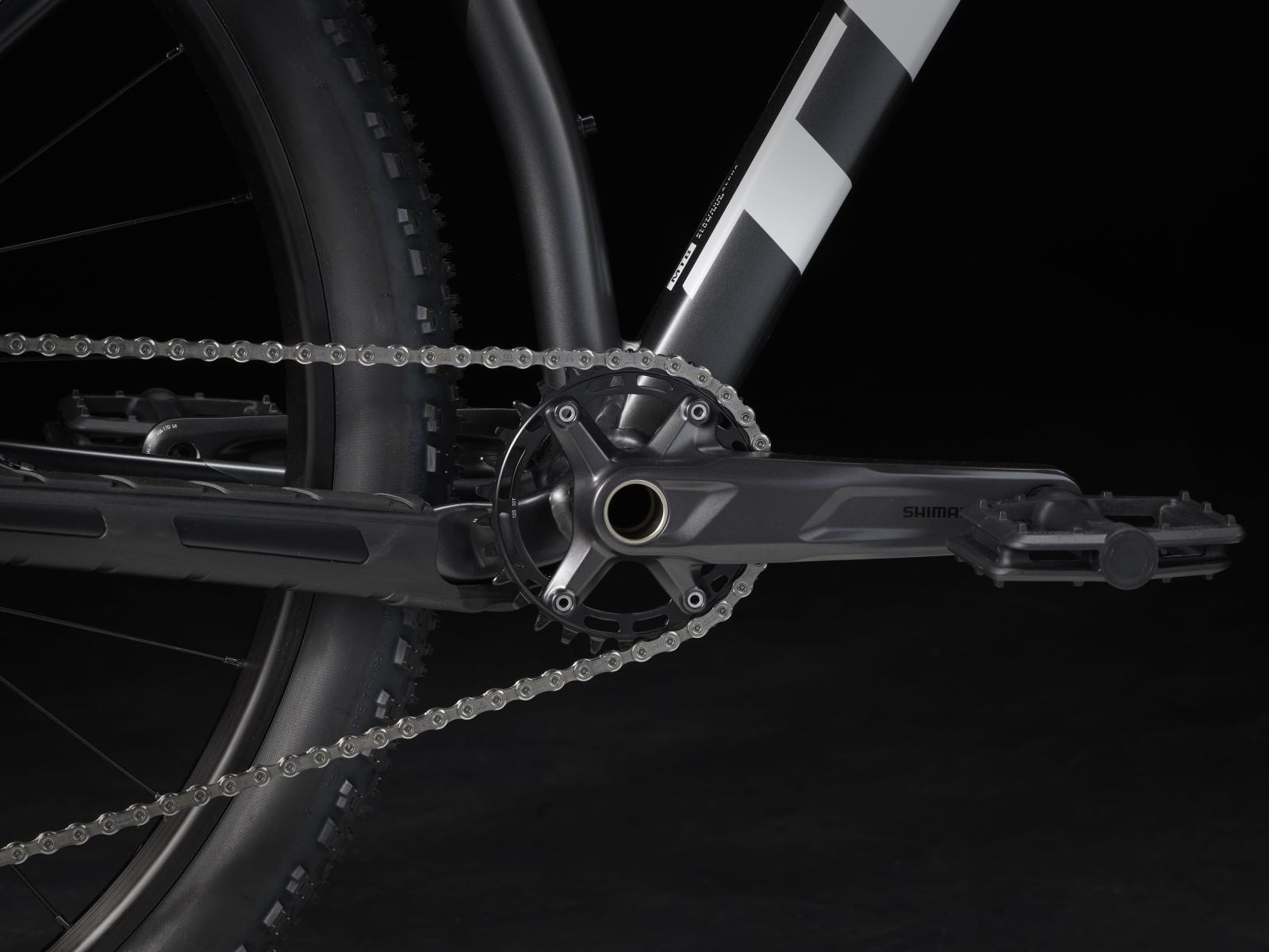 Einen leichten Hardtail-Rahmen aus Alpha Platinum Aluminium mit moderner XC-Geometrie samt 148 mm Boost-Einbaubreite f�r mehr Steifigkeit und Stabilit�t unter Last sowie eine trailgl�ttende RockShox Judy Silver Gabel mit 120 mm Federweg, Solo Air Luftfeder und TurnKey-Lockout. Dazu bekommst du einen sauber schaltenden 12fach-Antrieb mit Shimano XT/Deore Komponenten, Bontrager Kovee Tubeless-Ready-Laufr�der, eine Bontrager Line Variosattelst�tze mit interner Zugf�hrung und hydraulische Scheibenbremsen.