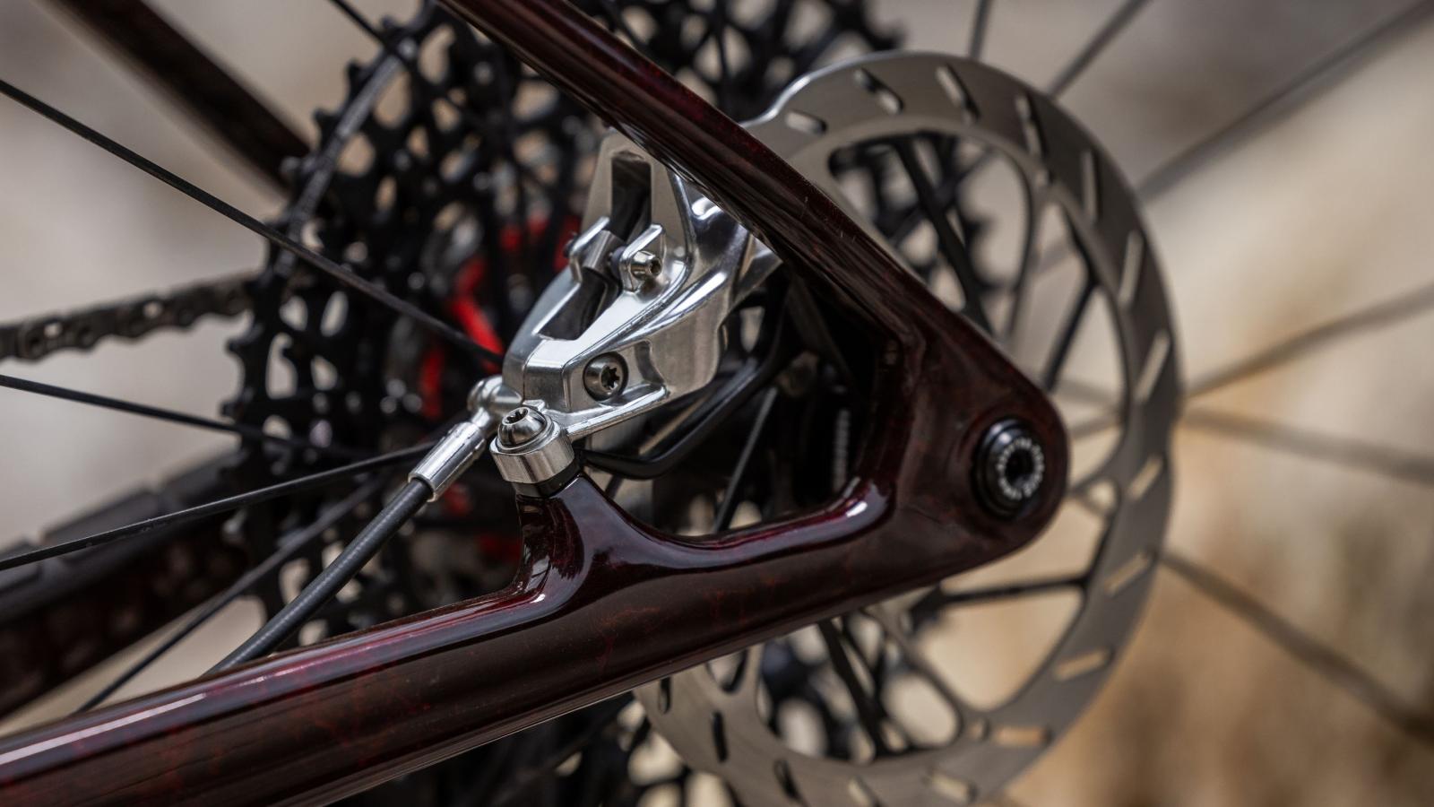 Statt an der Sitzstrebe ist der Bremssattel an einer Verl�ngerung der Hinterachse montiert, sodass die Sitzstrebe flexen und Unebenheiten auf dem Trail absorbieren kann, ohne die konstante und gut dosierbare Bremsleistung zu beeintr�chtigen.