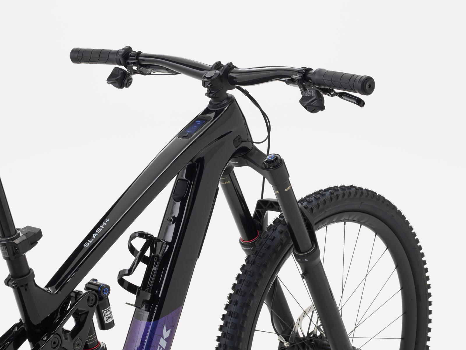 Das Slash+ 9.9 ist unser unangefochtener Platzhirsch unter den E-Endurobikes mit mittlerer Unterstützung. Sein TQ HPR60 Motor samt 580-Wh-Akku erzeugt einen sanften Vorschub und ermöglicht ausgedehnte Abenteuer auf deinen Lieblingstrails. Sein Rahmen aus OCLV Mountain Carbon ist mit den besten Teilen bestückt, wie einem RockShox Ultimate Fahrwerkspaket, Carbonlaufrädern, einer drahtlosen SRAM X0 Eagle AXS Schaltung und einer drahtlosen RockShox Reverb AXS Variosattelstütze.