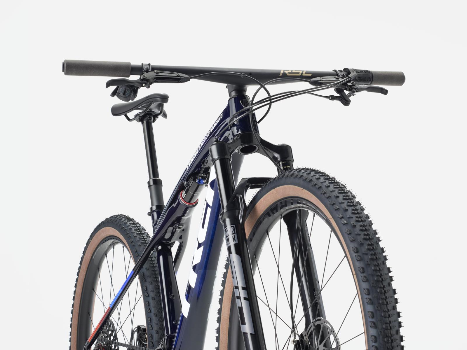 Einen federleichten Rahmen aus hochmoduligem SLR OCLV Mountain Carbon mit moderner XC-Geometrie. Au�erdem bekommst du eine RockShox SID Select+ 110-mm-Federgabel mit DebonAir Federung und Charger Race Day D�mpfung und einen RockShox SIDLuxe IsoStrut 80-mm-Hinterbaud�mpfer � nat�rlich komplett mit Remote-Lockout. Eine komplett drahtlose elektronische SRAM X0 AXS 12fach-Transmission, Bontrager Kovee Elite 23 Carbonlaufr�der, eine integrierte Bontrager RSL Lenker/Vorbau-Einheit aus Carbon, eine Bontrager Line Variosattelst�tze und hydraulische SRAM Level Silver 4-Kolben-Scheibenbremsen.