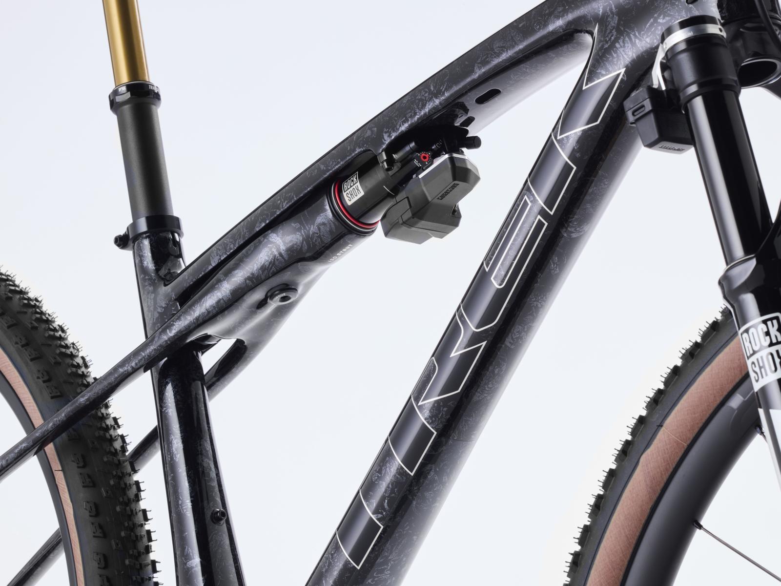 Einen federleichten Rahmen aus hochmoduligem SLR OCLV Mountain Carbon mit moderner XC-Geometrie. Au�erdem bekommst du eine RockShox SID SL Ultimate 110-mm-Federgabel mit DebonAir-Federung und Charger Race Day D�mpfung und einen RockShox SIDLuxe IsoStrut 80-mm-Hinterbaud�mpfer � nat�rlich komplett mit Remote-Lockout. Eine ultraleichte, komplett drahtlose elektronische SRAM XX SL AXS 12fach-Transmission, Bontrager Kovee RSL Carbonlaufr�der, eine integrierte Bontrager RSL Lenker/Vorbau-Einheit aus Carbon, eine FOX Transfer SL Variosattelst�tze und hydraulische SRAM Motive Ultimate 4-Kolben-Scheibenbremsen runden das Ausstattungspak
