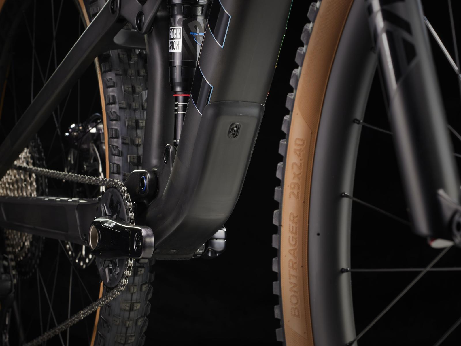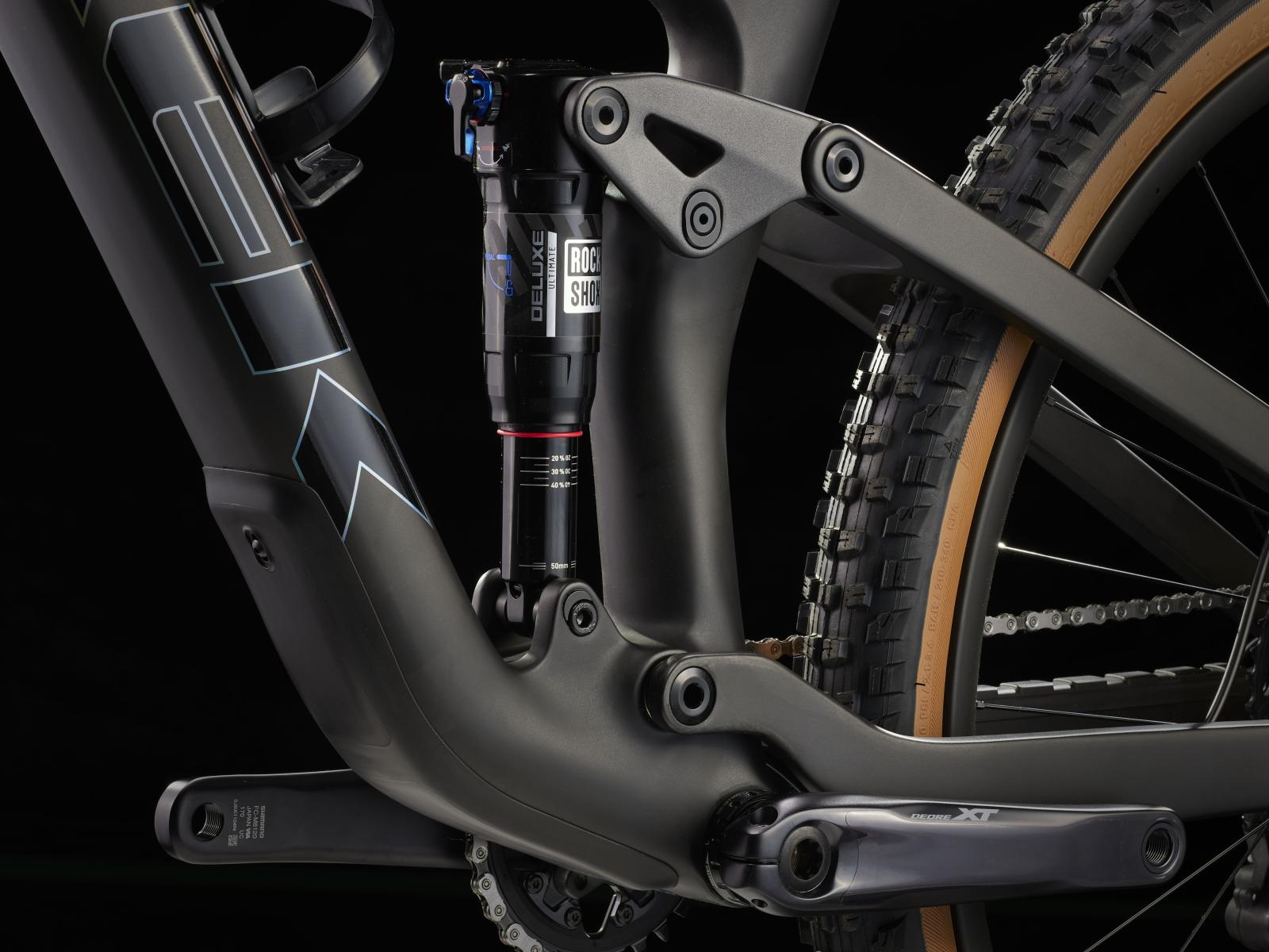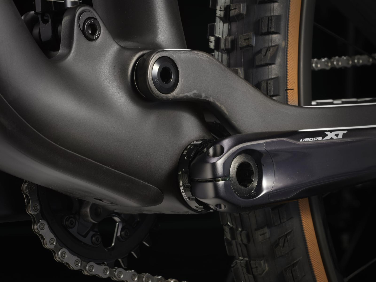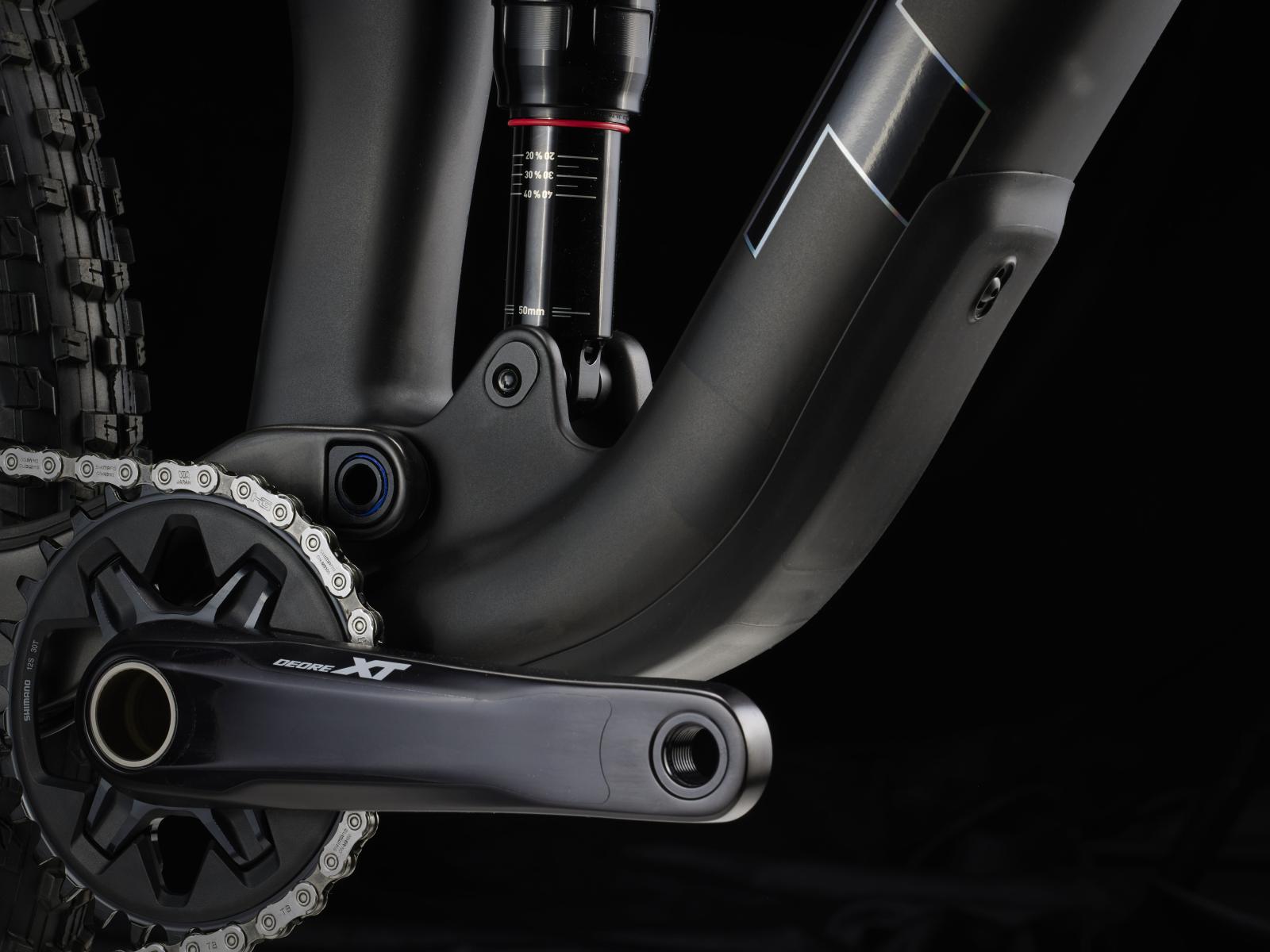 Einen leichten und steifen Vollcarbonrahmen, eine RockShox Pike Select+-Gabel mit 130 mm Federweg, einen RockShox Deluxe Ultimate RCT-D�mpfer mit 120 mm Federweg und einen neuen Shimano XT 1x12-Antrieb. Au�erdem kommt es mit breiten Bontrager Line Elite 30-Carbonlaufr�dern samt Rapid Drive-Nabe mit 108 Z�hnen f�r einen verz�gerungsfreien Kraftschluss sowie mit verl�sslichen, kraftvoll zupackenden 4-Kolben-Scheibenbremsen f�r maximales Vertrauen auf allen Abfahrten, Bontragers Line Elite-Variosattelst�tze und einem Carbonlenker.