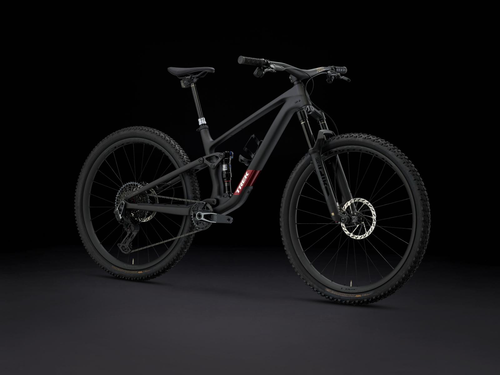 Einen Rahmen aus OCLV Mountain Carbon mit vierfach verstellbarem Mino Link an der unteren D�mpferaufnahme zur Feinanpassung der Rahmengeometrie und des Hebelverh�ltnisses des Fahrwerks. Eine RockShox Pike Ultimate Gabel mit 130 mm Federweg, DebonAir Luftfeder und Charger 3.1 RC2 D�mpfung sowie einen RockShox Deluxe Ultimate RCT Hinterbaud�mpfer mit 120 mm Federweg. Abgerundet wird die Ausstattung von einer drahtlosen SRAM X0 AXS Transmission, hydraulischen SRAM Level Silver Stealth 4-Kolben-Scheibenbremsen, einer RockShox Reverb AXS Variosattelst�tze und Bontrager Line Pro 30 Tubeless-Ready-Carbonlaufr�dern.