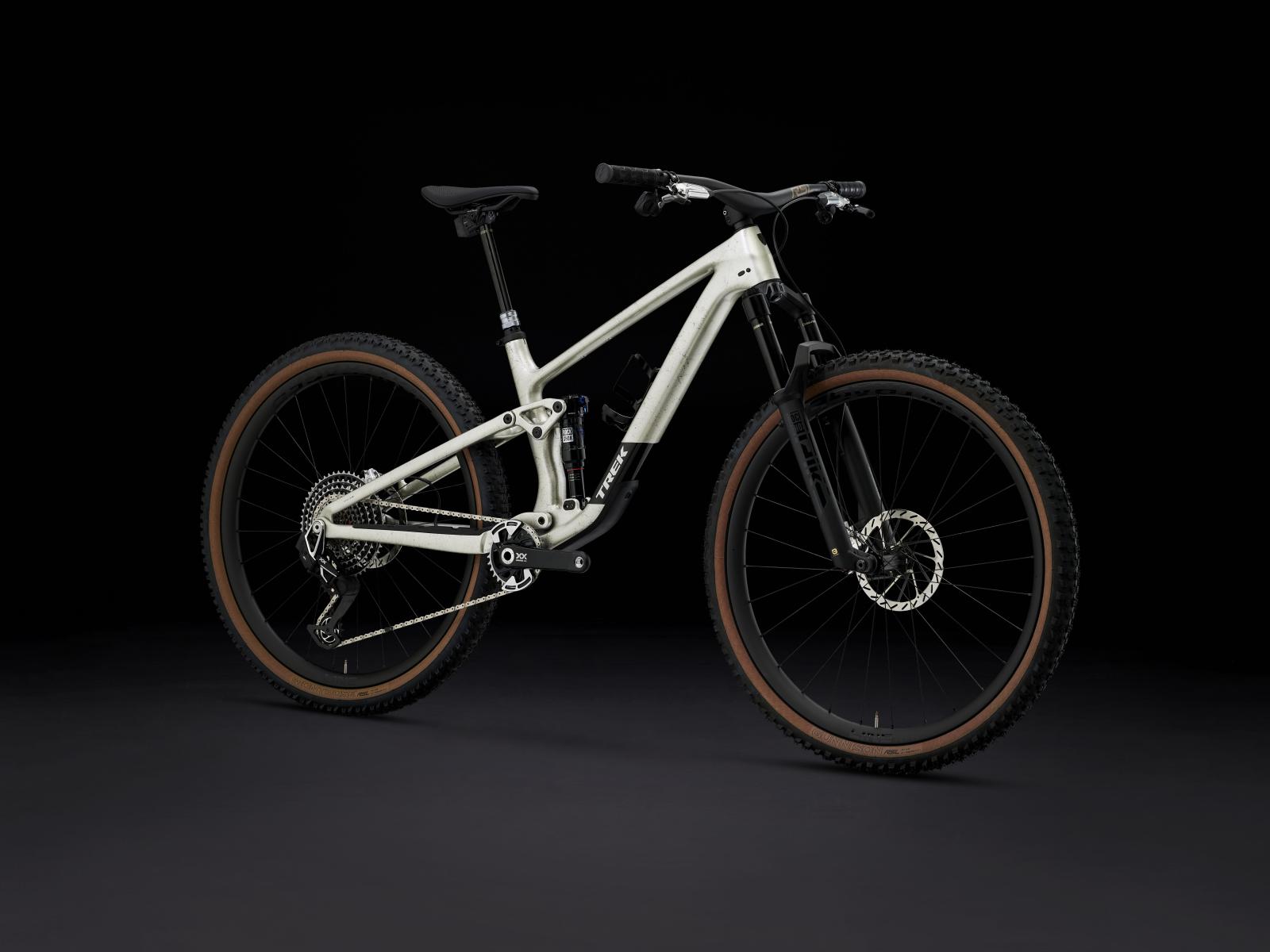 Einen Rahmen aus OCLV Mountain Carbon mit vierfach verstellbarem Mino Link an der unteren D�mpferaufnahme zur Feinanpassung der Rahmengeometrie und des Hebelverh�ltnisses des Fahrwerks. Eine RockShox Pike Ultimate Gabel mit 130 mm Federweg, DebonAir Luftfeder und Charger 3.1 RC2 D�mpfung sowie einen RockShox Deluxe Ultimate RCT Hinterbaud�mpfer mit 120 mm Federweg. Abgerundet wird die Ausstattung von einer ultraleichten drahtlosen SRAM XX AXS Transmission, hydraulischen SRAM Level Ultimate 4-Kolben-Scheibenbremsen, einer RockShox Reverb AXS Variosattelst�tze und Bontrager Line Pro 30 Tubeless-Ready-Carbonlaufr�dern.