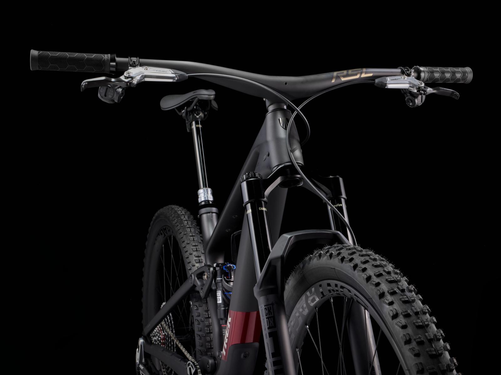 Einen Rahmen aus OCLV Mountain Carbon mit vierfach verstellbarem Mino Link an der unteren D�mpferaufnahme zur Feinanpassung der Rahmengeometrie und des Hebelverh�ltnisses des Fahrwerks. Eine RockShox Pike Ultimate Gabel mit 130 mm Federweg, DebonAir Luftfeder und Charger 3.1 RC2 D�mpfung sowie einen RockShox Deluxe Ultimate RCT Hinterbaud�mpfer mit 120 mm Federweg. Abgerundet wird die Ausstattung von einer ultraleichten drahtlosen SRAM XX AXS Transmission, hydraulischen SRAM Level Ultimate 4-Kolben-Scheibenbremsen, einer RockShox Reverb AXS Variosattelst�tze und Bontrager Line Pro 30 Tubeless-Ready-Carbonlaufr�dern.