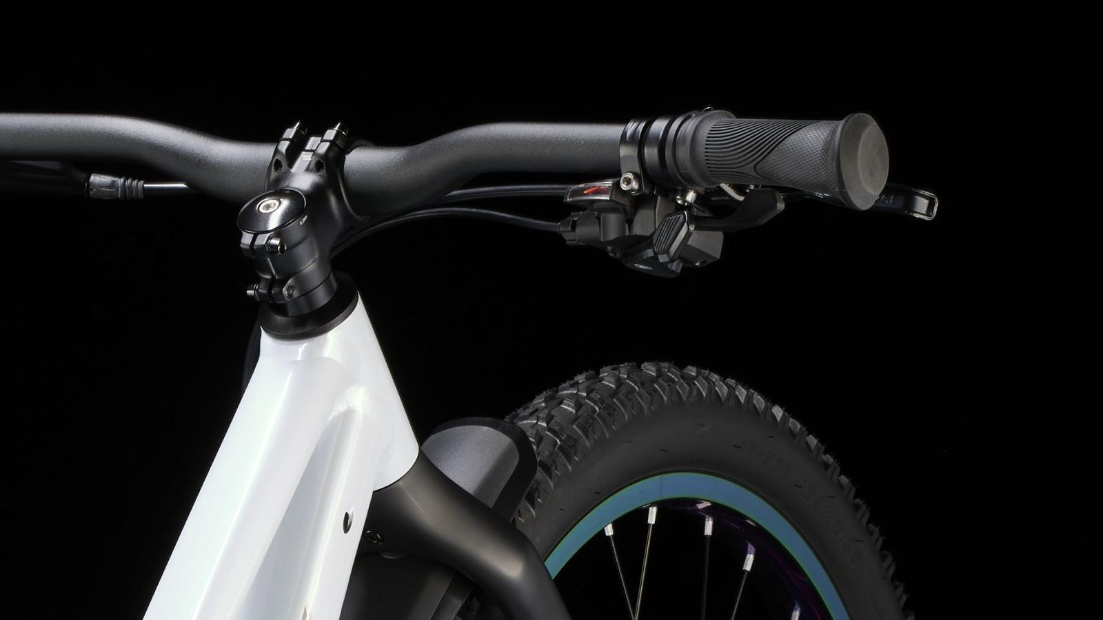 Einen Rahmen aus Alpha Silver Aluminium mit 20 Zoll gro�en Laufr�dern und griffigen, 2,4 Zoll breiten Stollenreifen, die sich im Untergrund festbei�en und ein Plus an Traktion bieten. Dazu gibt es eine speziell auf Kinderbed�rfnisse zugeschnittene Ausstattung, wie etwa die intuitive 9-Gang-Schaltung von microSHIFT und die kraftvoll zupackenden hydraulischen Scheibenbremsen.