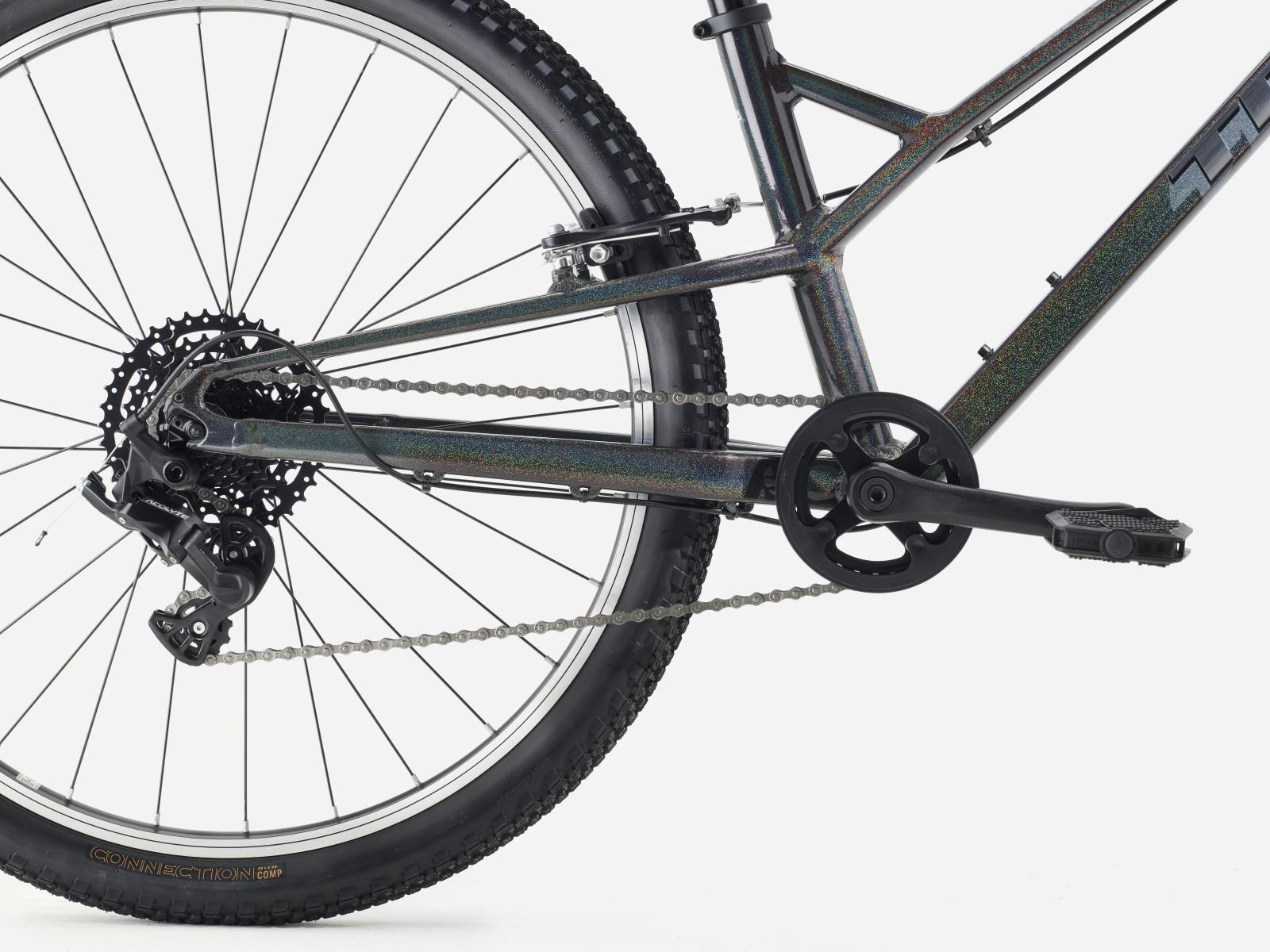 Einen Rahmen aus Alpha Silver Aluminium mit 26 Zoll gro�en Laufr�dern und 2 Zoll breiten Reifen, die f�r Grip und Geschwindigkeit auf Asphalt konzipiert sind. Dazu gibt es eine speziell auf Kinderbed�rfnisse zugeschnittene Ausstattung, wie etwa die intuitive 8-Gang-Schaltung von microSHIFT und unkomplizierte Felgenbremsen samt kindgerechten Bremshebeln.