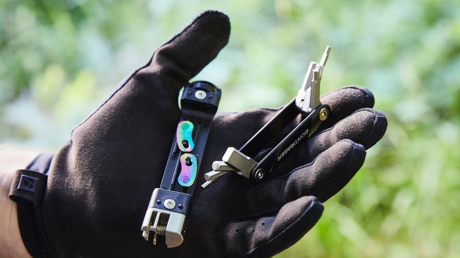 Dank Sechskant- und Torx-Bits, Schraubendreher, Kettennieter und mehr bist du für fast alle Eventualitäten auf dem Trail gewappnet.