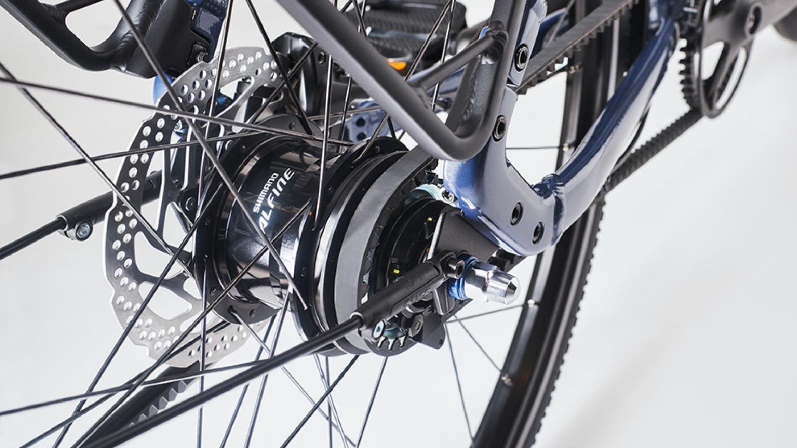Alfine 11 ist die Schaltnabe von Shimano mit pr�ziser bedienbaren Daumenhebeln statt Drehgriff, die mit einer breiten �bersetzung auch auf Anstiegen und Abfahrten Leistung zeigt.
