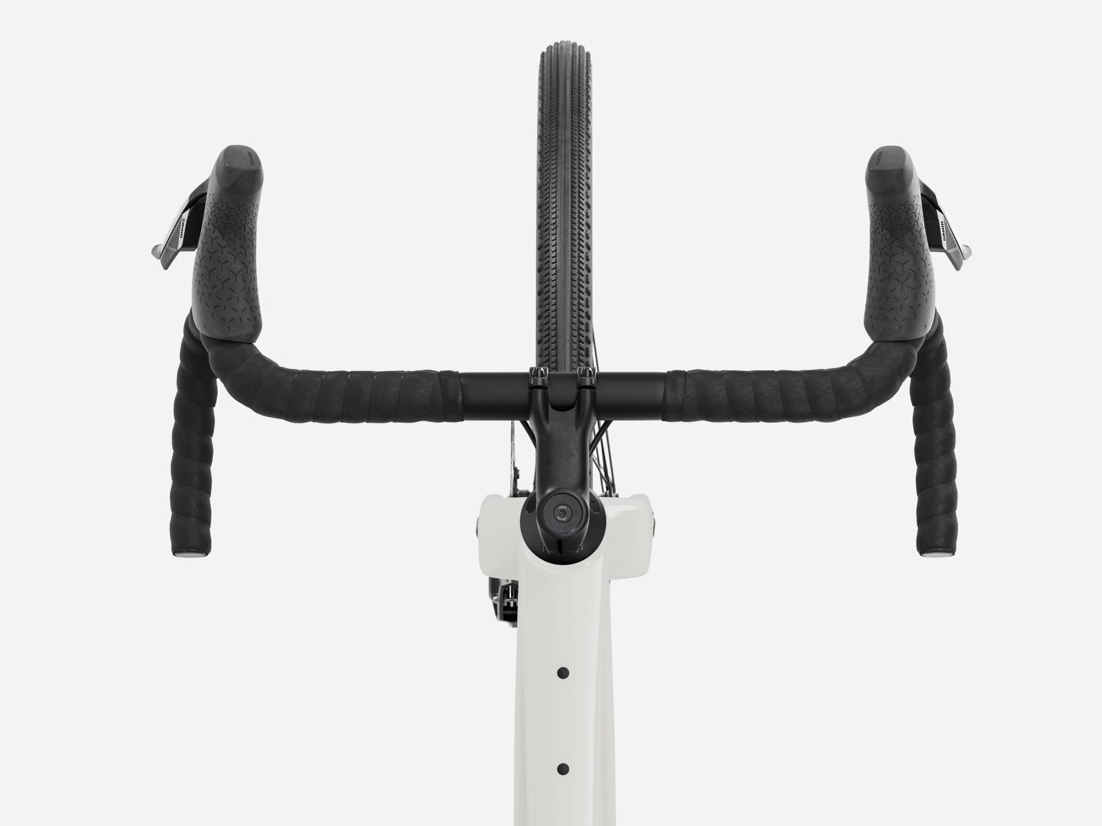 Einen Rahmen aus 500 Series OCLV Carbon samt Carbongabel, Staufach im Unterrohr, Befestigungsm�glichkeiten an Rahmen und Gabel und Platz f�r Reifen bis 50 mm (wie gemessen). Eine komplett drahtlose SRAM Rival AXS E1 1x13-Schaltung, hydraulische Scheibenbremsen, eine Carbonsattelst�tze und Bontrager Paradigm Comp Tubeless-Ready-Laufr�der mit 42 mm breiten Reifen.