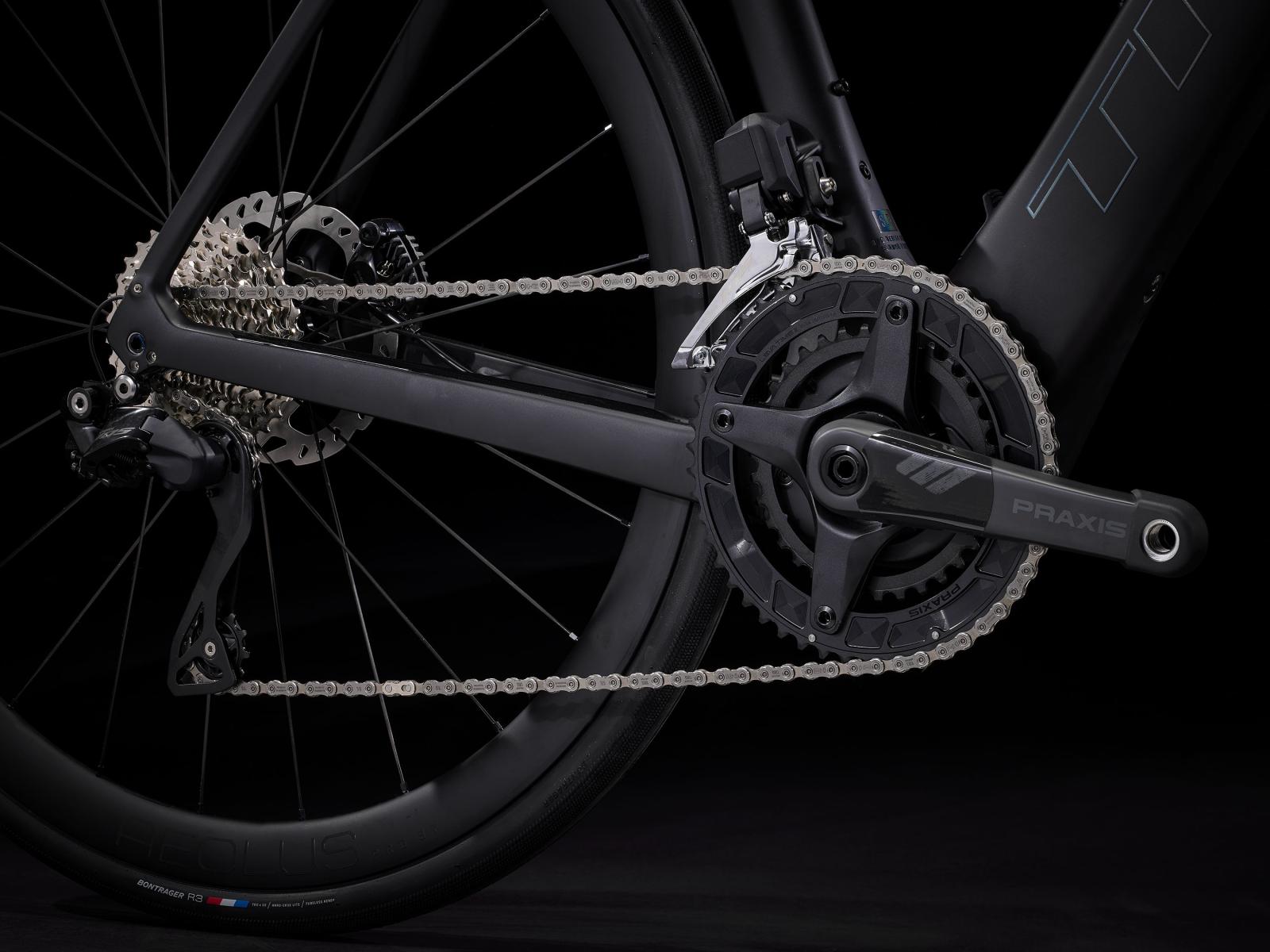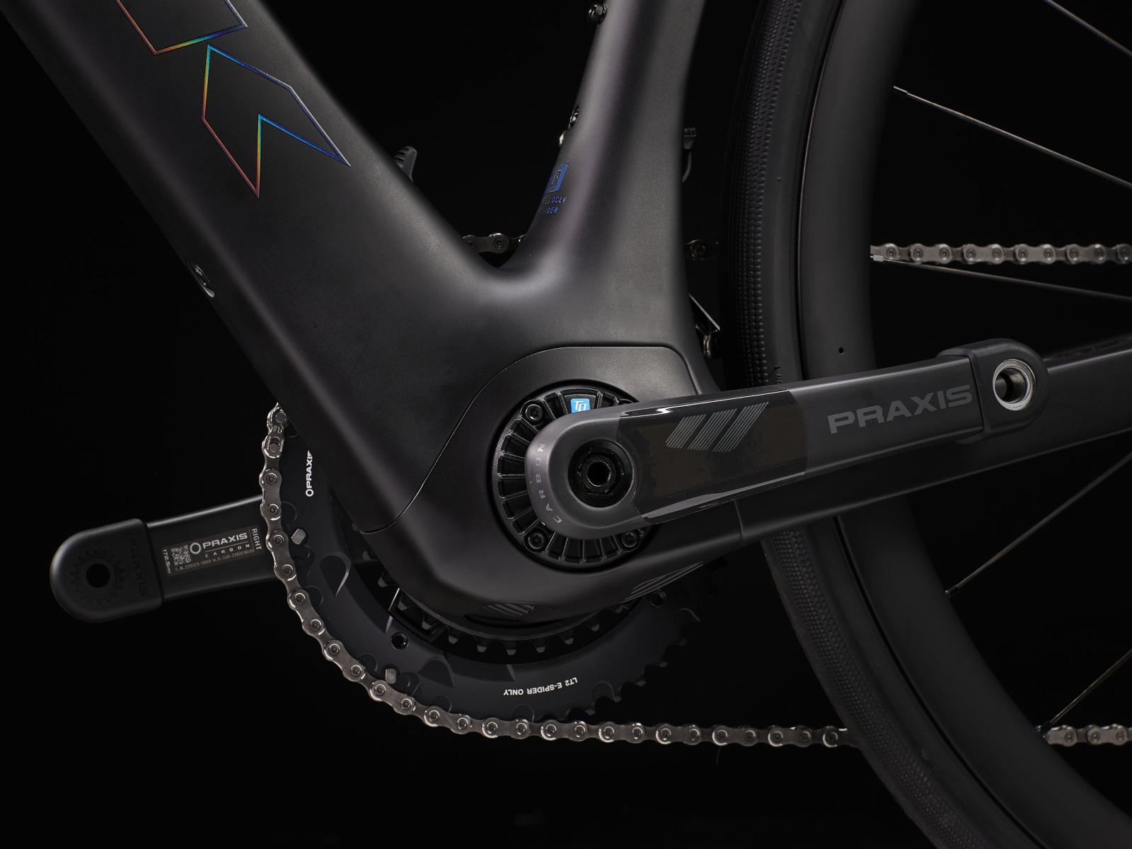Einen �u�erst leichten Rahmen aus 800 Series OCLV Carbon mit hinterem IsoSpeed. Einen kraftvollen Harmonic Pinring-Motor von TQ mit einem Drehmoment von 50 Nm, der dich bis zu einer Geschwindigkeit von 25 km/h unterst�tzt, einen 360 Wh gro�en integrierten Akku, ein in den Rahmen integriertes, smartes LED-Display und diskret in die Bremsgriffgummis verbaute Bedienelemente f�r das Umschalten der Unterst�tzungsmodi. Aeolus Pro 37-Laufr�der aus OCLV Carbon, eine drahtlose, elektronische Shimano 105 Di2 2x12-Schaltung, eine Carbonkurbelgarnitur, ein vibrationsd�mpfender Bontrager Pro IsoCore-Lenker und ein RCS Pro-Vorbau mit vollst�n