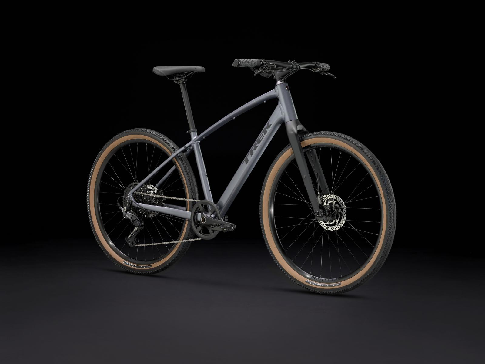 Das Dual Sport 3 ist ein leistungsf�higes, universelles Alltagsrad, das auf der Stra�e und in etwas ungem�tlicherem Terrain gleicherma�en zu Hause ist. Es punktet mit einem leichten Rahmen und einer unkomplizierten Shimano CUES 1x-Schaltung mit breitem �bersetzungsspektrum. Die breiten Bontrager Kovee-Laufr�der samt breiten Gravelreifen nehmen Unebenheiten und rauem Terrain den Schrecken und sorgen auf Asphalt, Forstwegen und leichten Trails f�r einen hohen Fahrkomfort.
