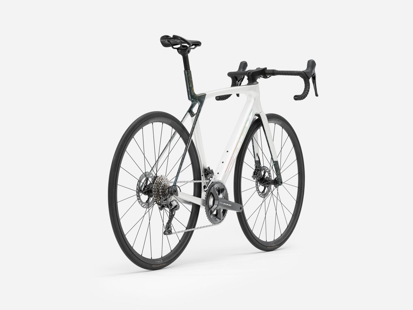 Das Madone SL 5 Gen 8 ist ein leichtes Aero-Rennrad, das Elite-Renntechnologie erschwinglich macht. Es bietet �hnliche aerodynamische Vorteile wie das h�herpreisige Madone SLR Gen 8, basiert aber auf einem erschwinglicheren Layup aus 500 Series OCLV Carbon und einem zweiteiligen Cockpit mit interner Zugf�hrung. Die zuverl�ssige und pr�zise Shimano 105 Gruppe sowie der Aluminiumlenker und die Aluminiumlaufr�der halten den Preis im �berschaubaren Rahmen und �berzeugen mit einer gro�artigen Performance.