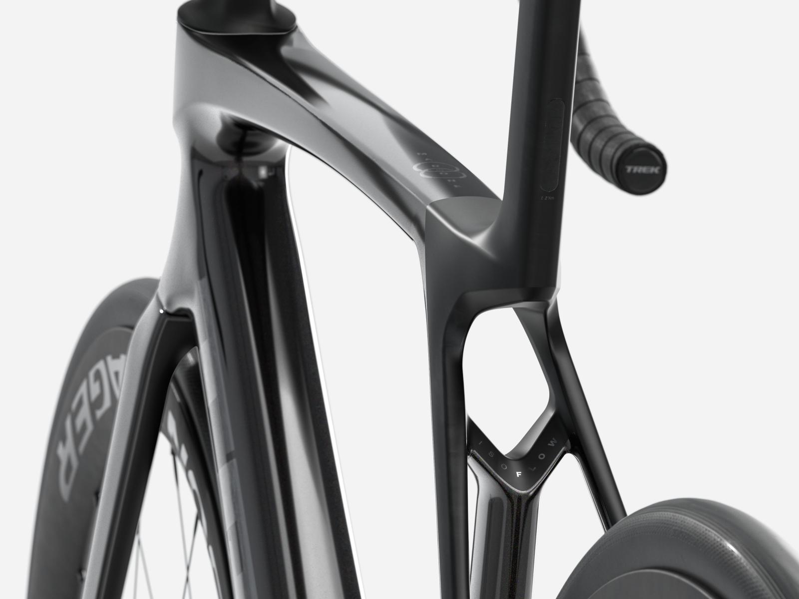 Der im Vergleich zum Unterlenker schmalere Oberlenker des Madone�Gen�8 erm�glicht eine auf Aerodynamik oder Power optimierte Positionierung auf dem Bike. Und dank zweiteiligem Lenker/Vorbau-Design l�sst sich die Passform schnell und einfach anpassen.