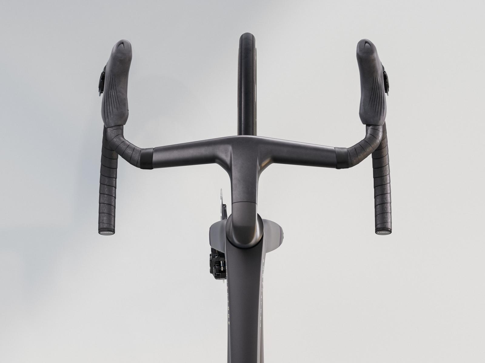 Die neue einteilige Lenker/Vorbau-Einheit ist leichter, aerodynamischer und ergonomischer als die Vorgängerversion. Darüber hinaus ermöglicht der im Vergleich zum Unterlenker 3 cm schmalere Oberlenker die Anpassung der Positionierung auf dem Bike, um entweder in der Oberlenkerposition von einer besseren Aerodynamik zu profitieren oder im Unterlenker mehr Kraft aufs Pedal zu bringen.