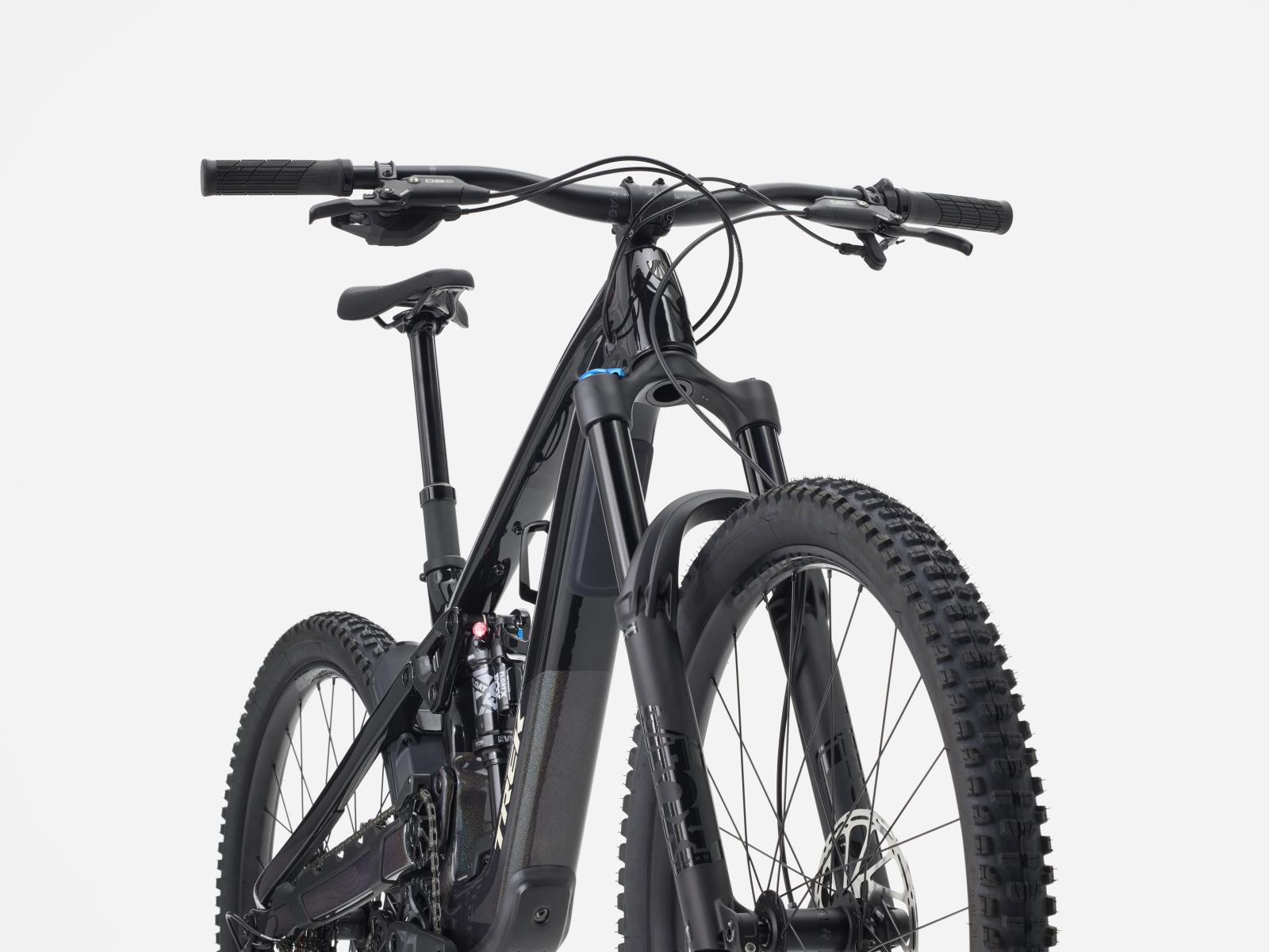 Rahmen: OCLV Mountain Carbon, herausnehmbarer Akku, hoher Hauptdrehpunkt, Umlenkrolle, Steuersatz mit verstellbarem Lenkwinkel, verstellbare Progression, integrierter Rahmenschutz, interne Zugführung, Alu-Umlenkhebel, Aufnahme für obere Kettenführung, 55 mm Kettenlinie, ABP, UDH, 148 x 12 mm Steckach