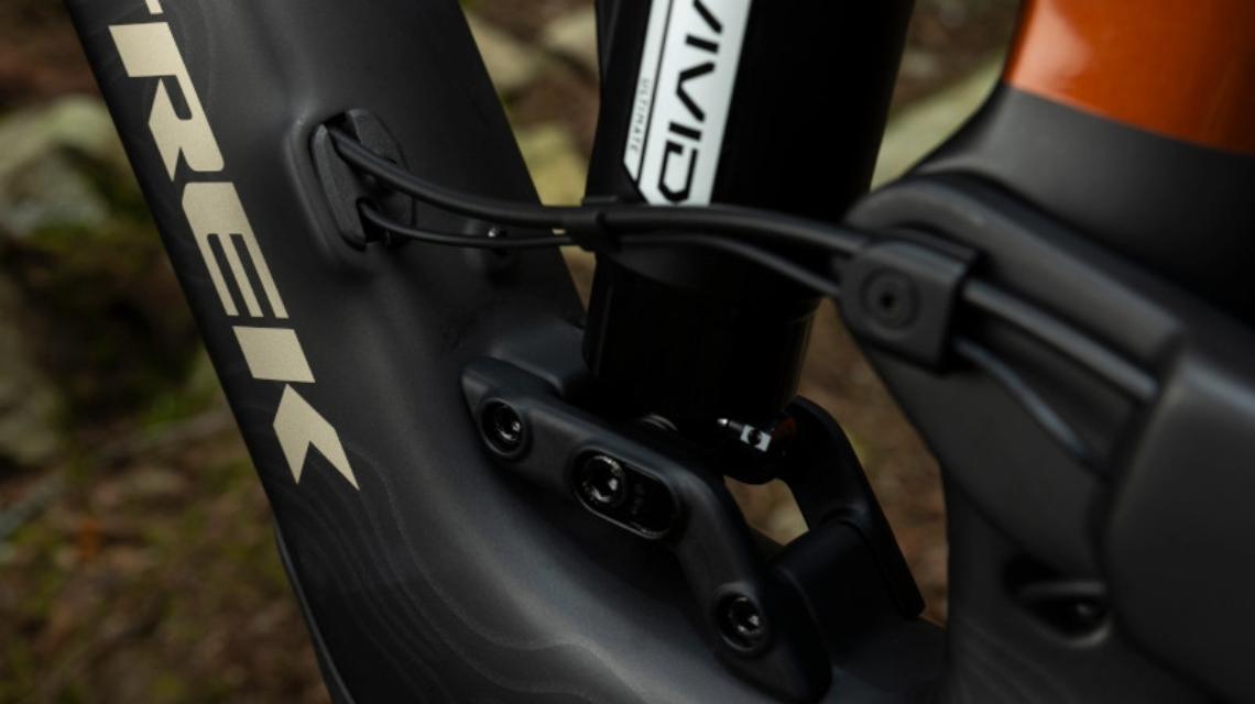 Rahmen: OCLV Mountain Carbon, herausnehmbarer Akku, hoher Hauptdrehpunkt, Umlenkrolle, Steuersatz mit verstellbarem Lenkwinkel, verstellbare Progression, integrierter Rahmenschutz, interne Zugführung, Alu-Umlenkhebel, Aufnahme für obere Kettenführung, 55 mm Kettenlinie, ABP, UDH, 148 x 12 mm Steckach