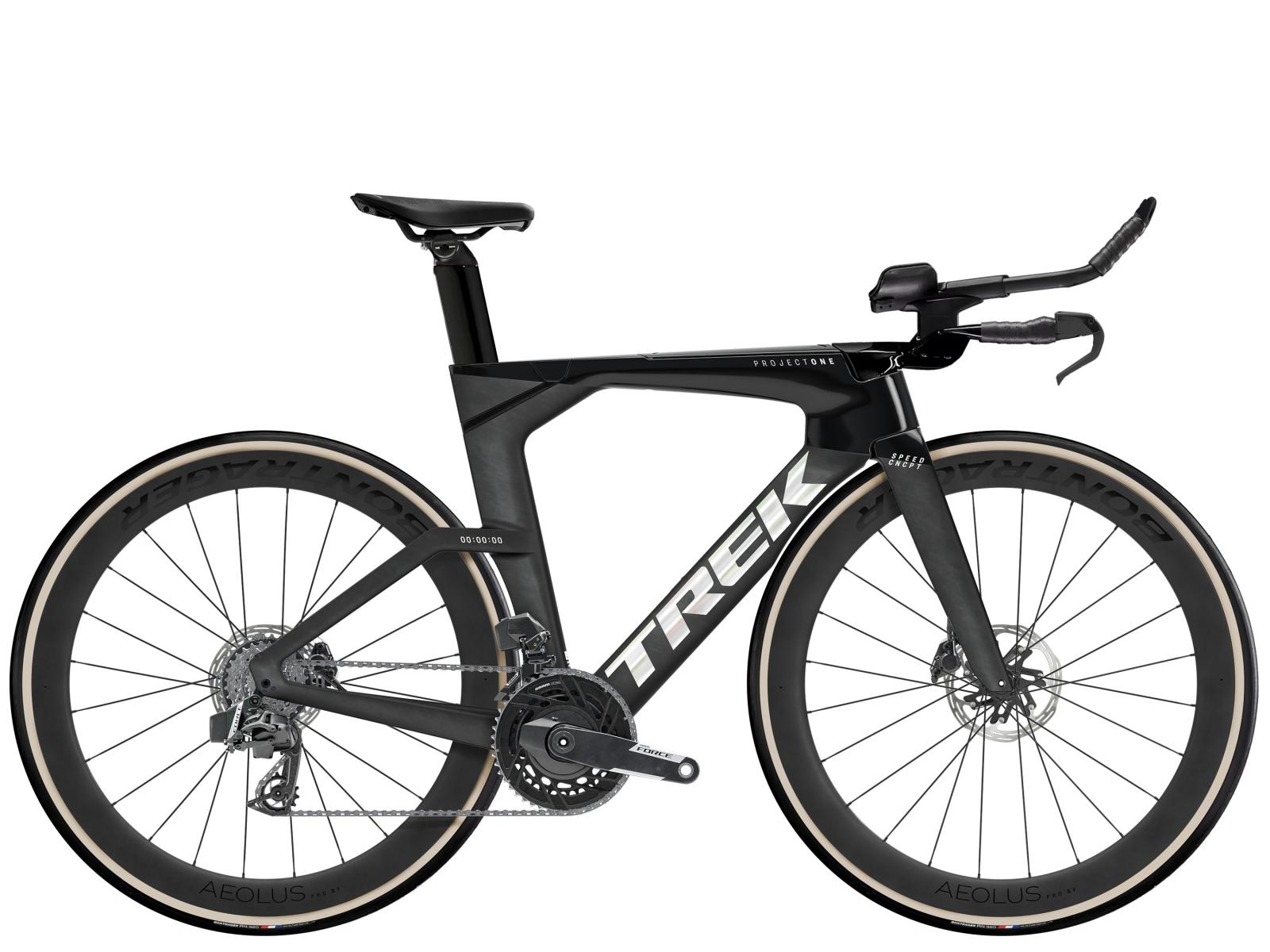 Einen ultraleichten Rahmen aus 800 Series OCLV Carbon, windschnittige Rohre mit Kammtail Virtual Foil Profil (KVF), eine Speed Concept Carbongabel mit aerodynamischem Profil, vibrationsd�mpfendes IsoSpeed, integrierte Aufbewahrungsl�sungen f�r Verpflegung, Fl�ssigkeit und Pannenkit, einen drahtlosen, elektronischen SRAM Force AXS E1 12fach-Antrieb mit SRAM AXS Blips Schalthebeln, ein SRAM Force AXS Powermeter, eine vollst�ndig integrierten Lenker/Vorbau-Einheit, einen triathlonspezifischen Bontrager Hilo Comp Sattel f�r eine aggressive Aero-Sitzposition, Scheibenbremsen f�r zuverl�ssige Bremsleistung und Bontrager Aeolus Pro 51