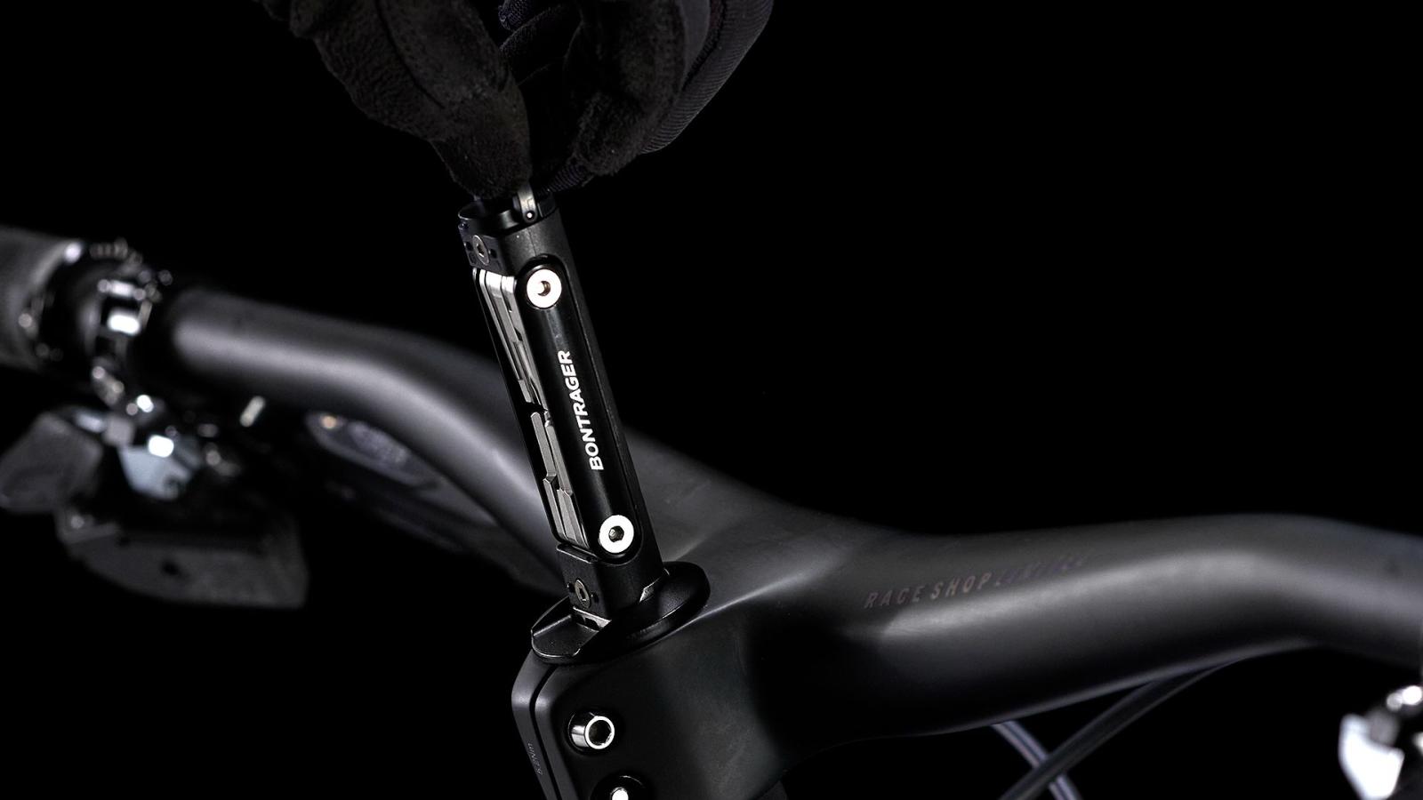 Das raffiniert in den Gabelschaft integrierte BITS Multitool kommt mit allem, was du für Einstellarbeiten und Reparaturen auf dem Trail benötigst.
